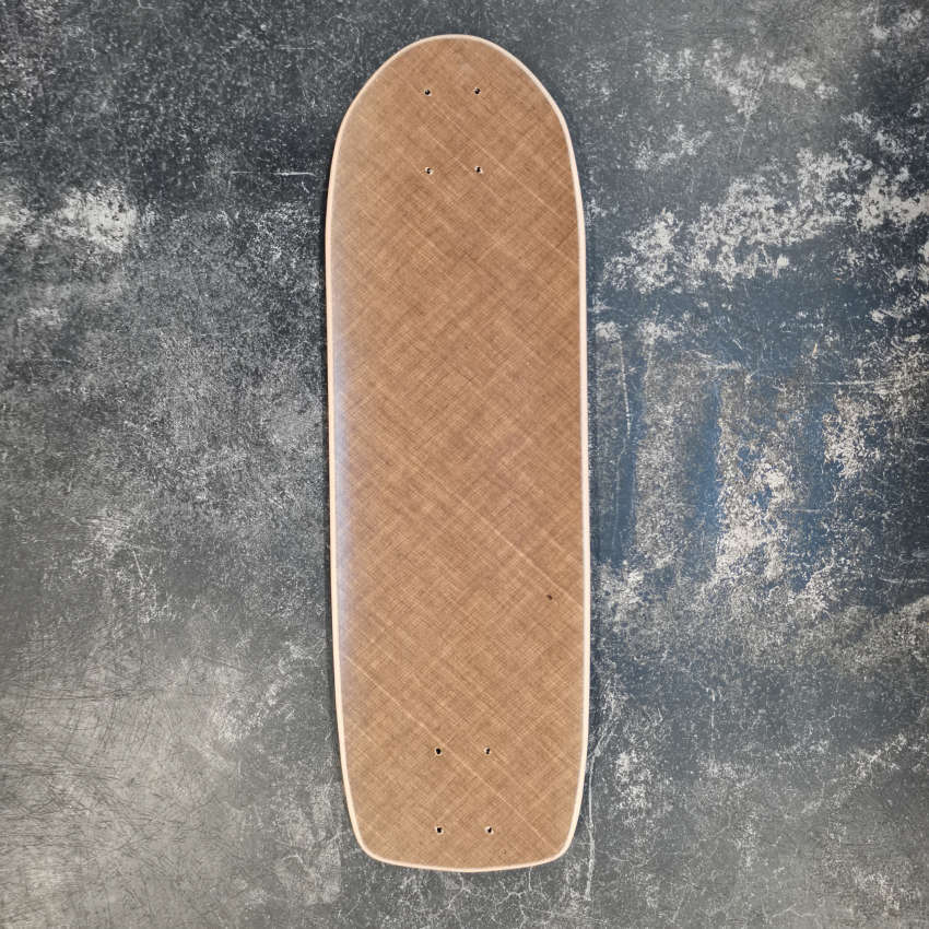 These are mini boards cut from first-generation Linum with the “Dia de los Muertos” graphic. Two boards of this shape with a rounded nose are available.