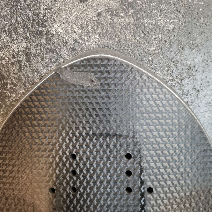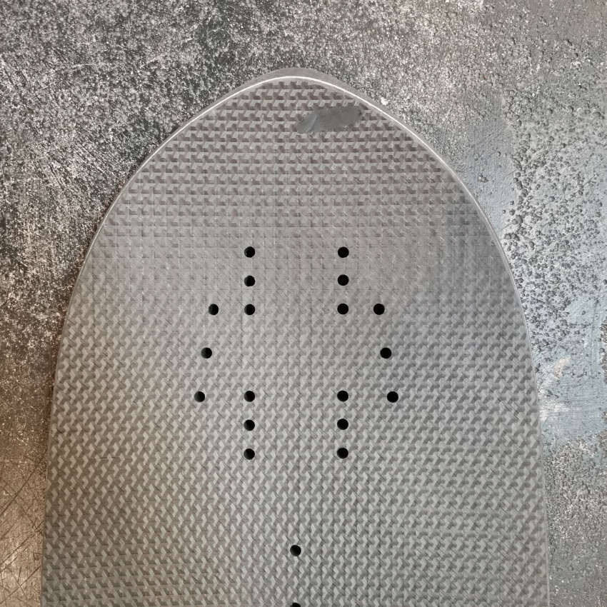This is a Simplex with a defect at the nose. The board came loose from the CNC machine during milling, and the cutter cut into the board. The area was completely filled with urethane.