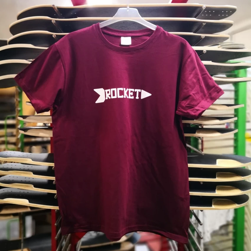 Our classic ROCKET logo, printed on a beautiful burgundy T-shirt